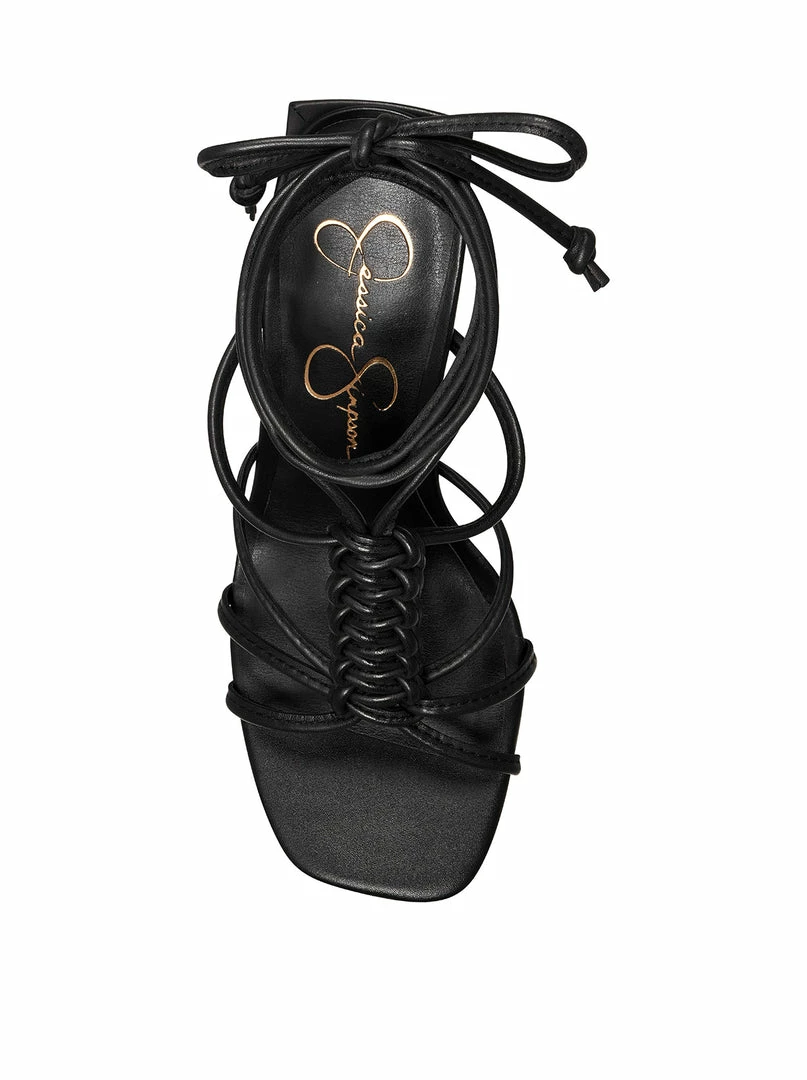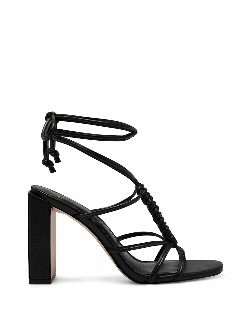 Lace-Up High Heel Sandal with Knotted Details and Block Heel