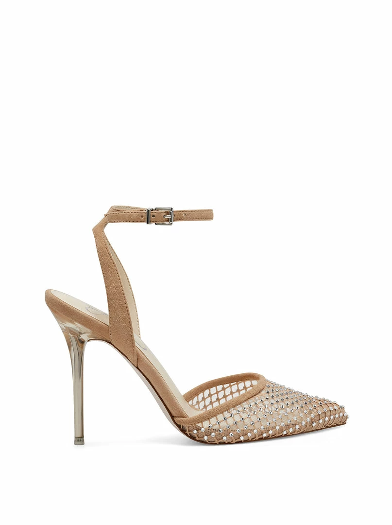 High Heel in PVC with a closed toe and ankle-strap closure.