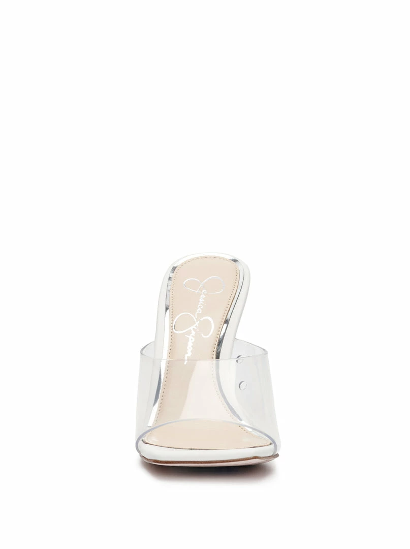 Slide Sandal with Lucite Heel and Square Toe.