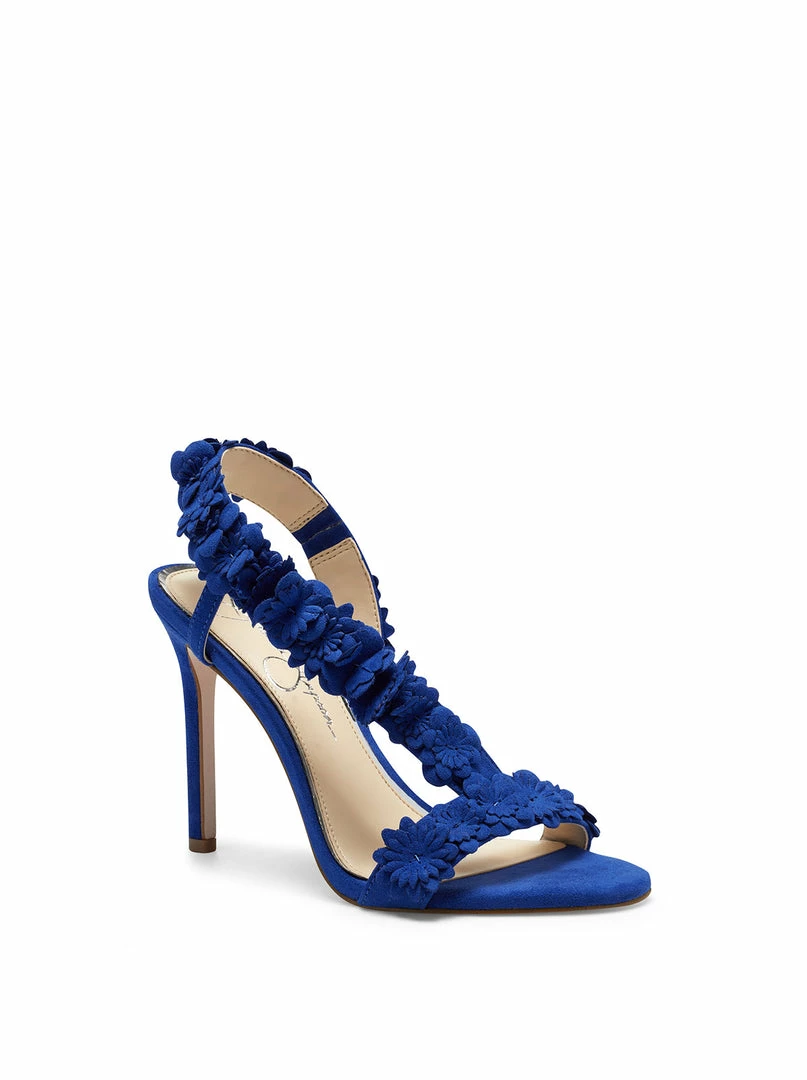 Floral embroidered strappy sandal.
