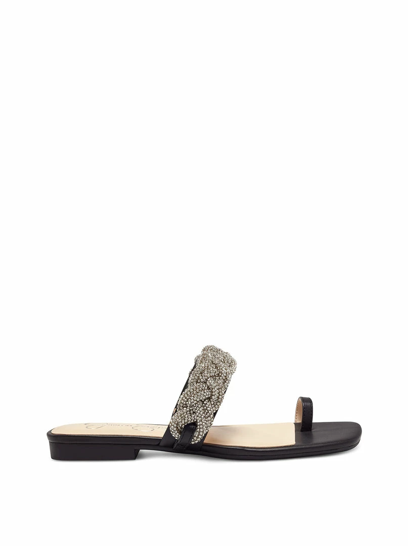 Flat Thong Slide with Braided Embellishment.