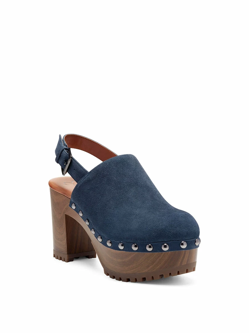 Platform Clog with Ankle Strap, Buckle Closure and Stud Detailing.