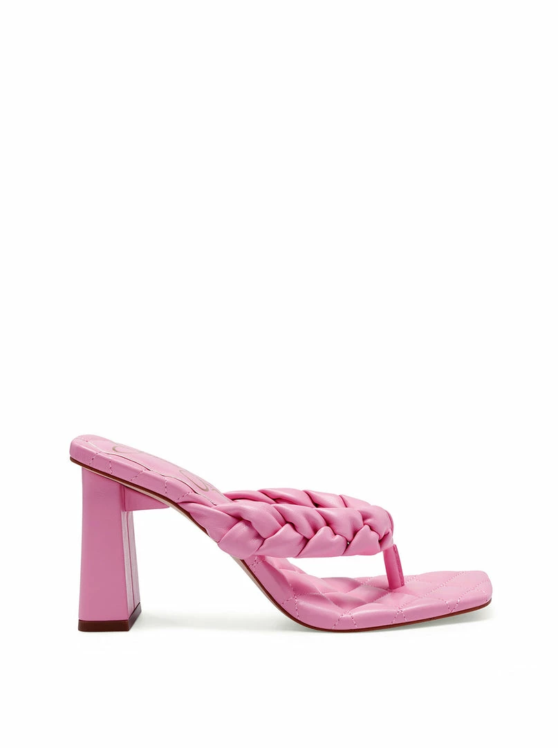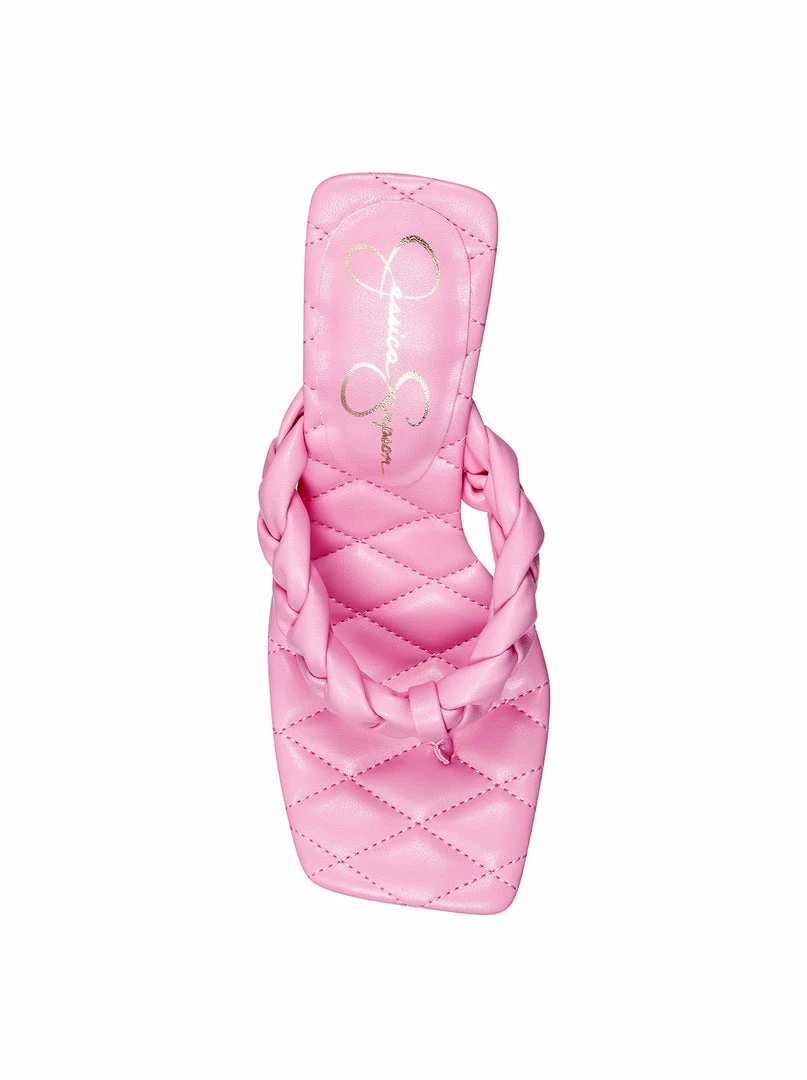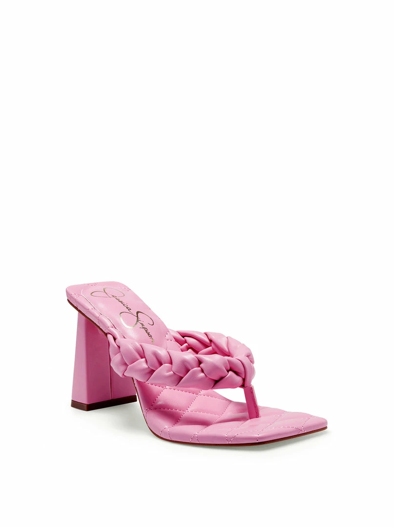 Block Heel Thong Sandal with Braided Detail.