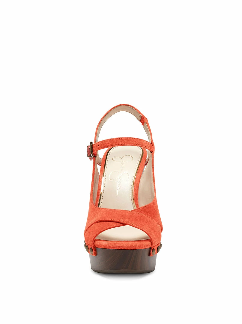 Platform Wedge Sandal with Ankle Strap and Stud Detailing.