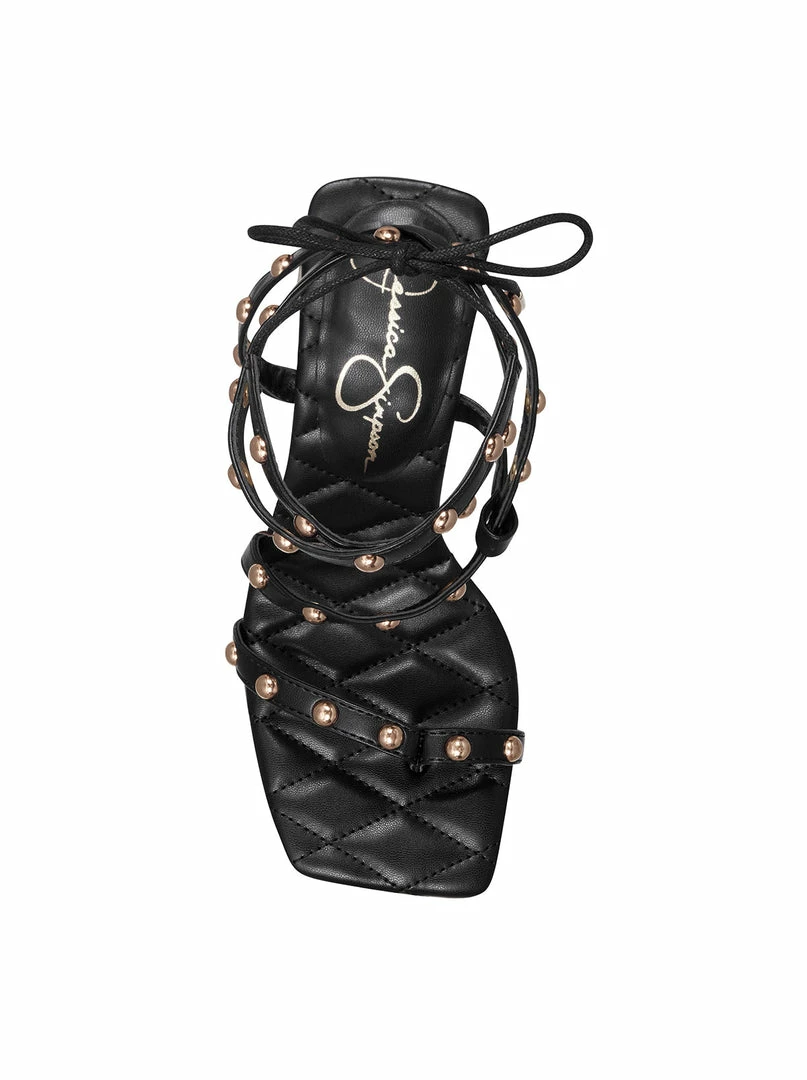 Block Heel Thong Sandal with Stud Embellishment.