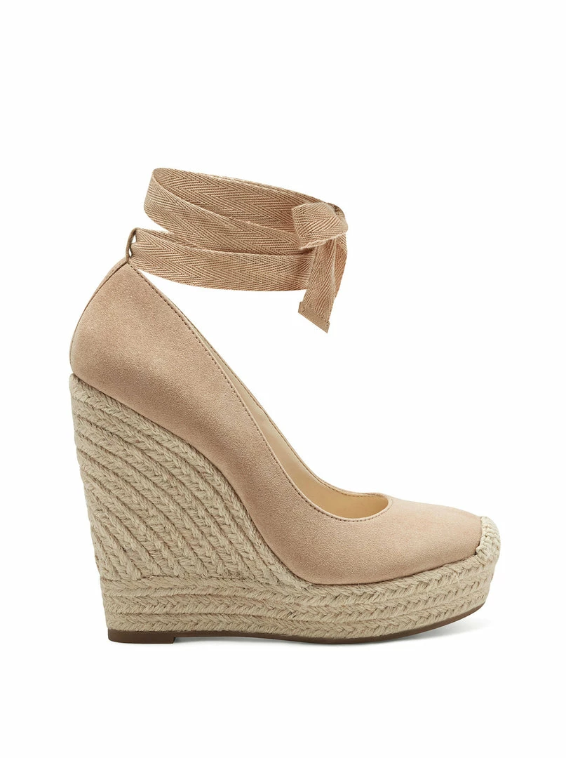 Raffia Platform Wedge with Ankle Strap Ribbon