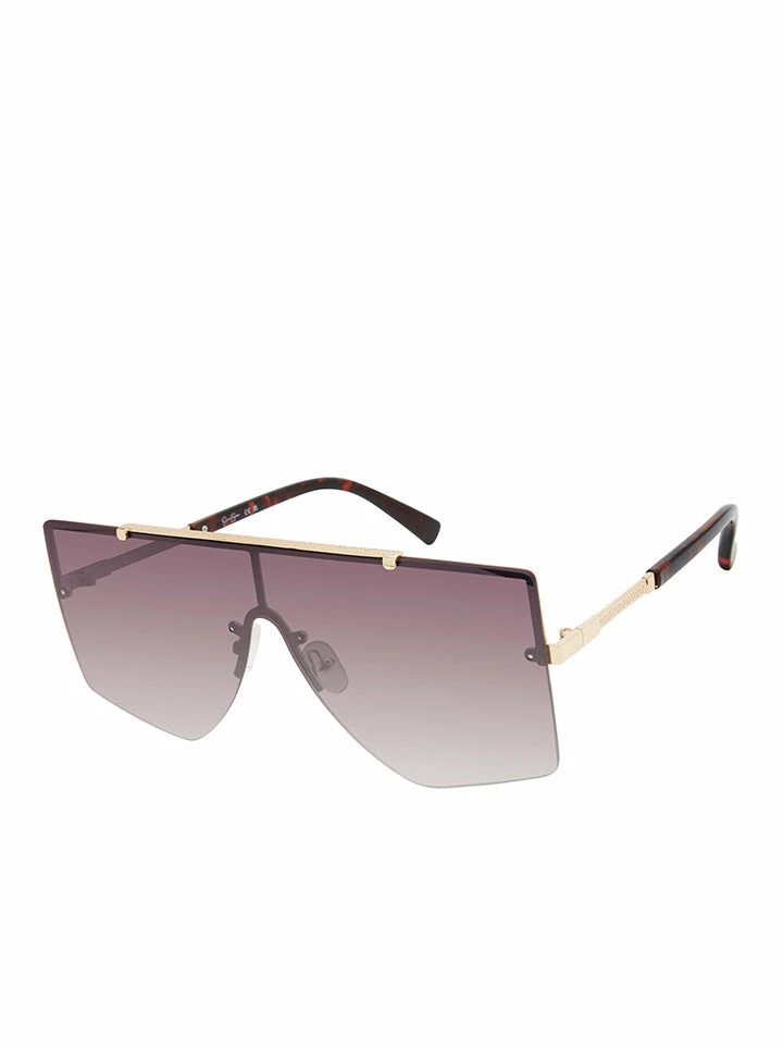 - Frame Color: Gold & Tortoise. Lens Color: Gradient Brown with Gold Flash.