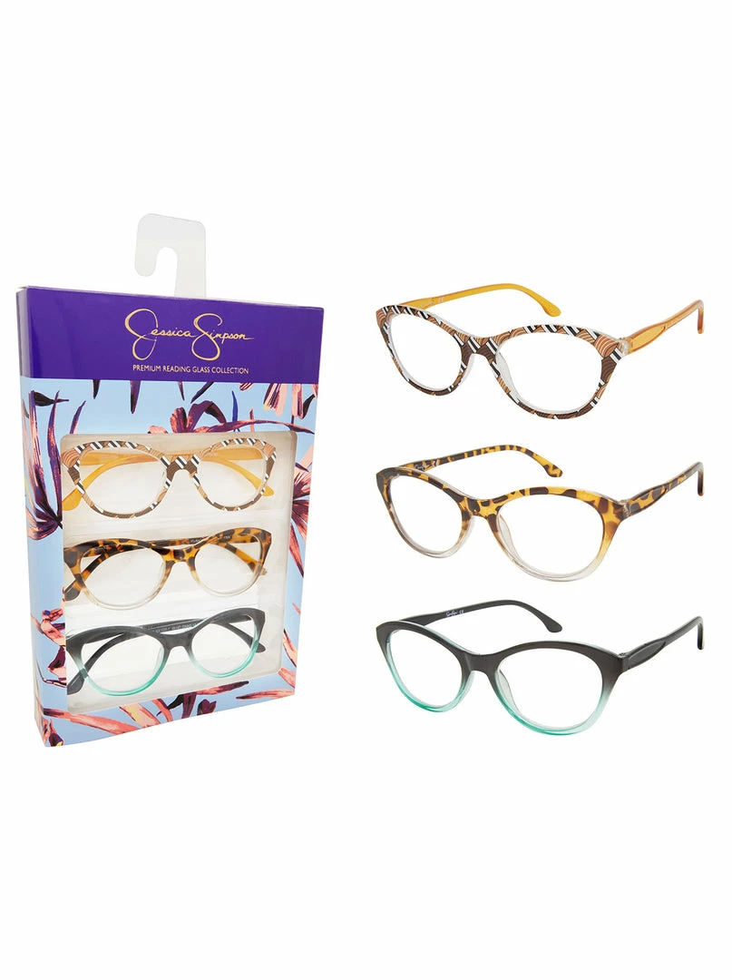 STYLISH SET of 3 JESSICA SIMPSON READING GLASSES FOR WOMEN: Assorted colors to match any outfit or ocassion & convenient to leave a pair of readers in your car, office & at home so you’re never without a pair of readers. Great Gifts for Women!