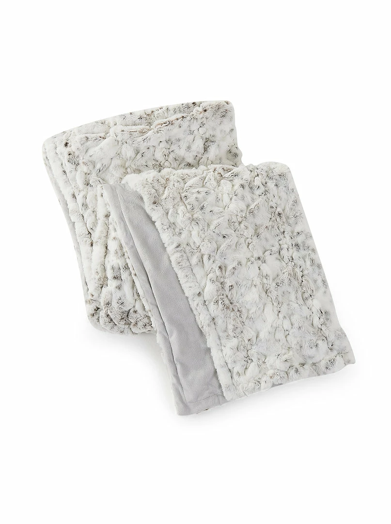 ‘The Jessica Simpson lifestyle collection reflects all that is modern Americana: it is iconic, fashion-forward, feminine, accessible, comfortable, timeless and affordable. Imagine cozying up by the fire with the Ruched Leopard Throw by Jessica Simpson. This luxurious throw has a faux leopard fur face reversing to a solid mink faux fur. All designed in a wintery palette of greys and white. The whole blanket is ruched to create a sumptuous texture. This throw is all polyester.